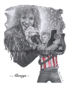 ALWAYS (Bon Jovi), 11″x14″, On acid-free archival stock, 50 numbered & signed prints, $75 Canadian/each + shipping. To check availability and to order, e-mail Mark at markdraws@hotmail.com.